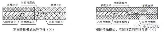 1、不同傳輸模式的光纖、相同傳輸模式但不同纖芯的光纖不能互連到一起。