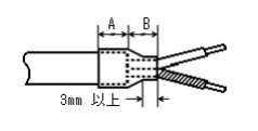 3、熱縮套管的長(zhǎng)度A:B之比最好為1:1,最小收縮部分至少為3mm;