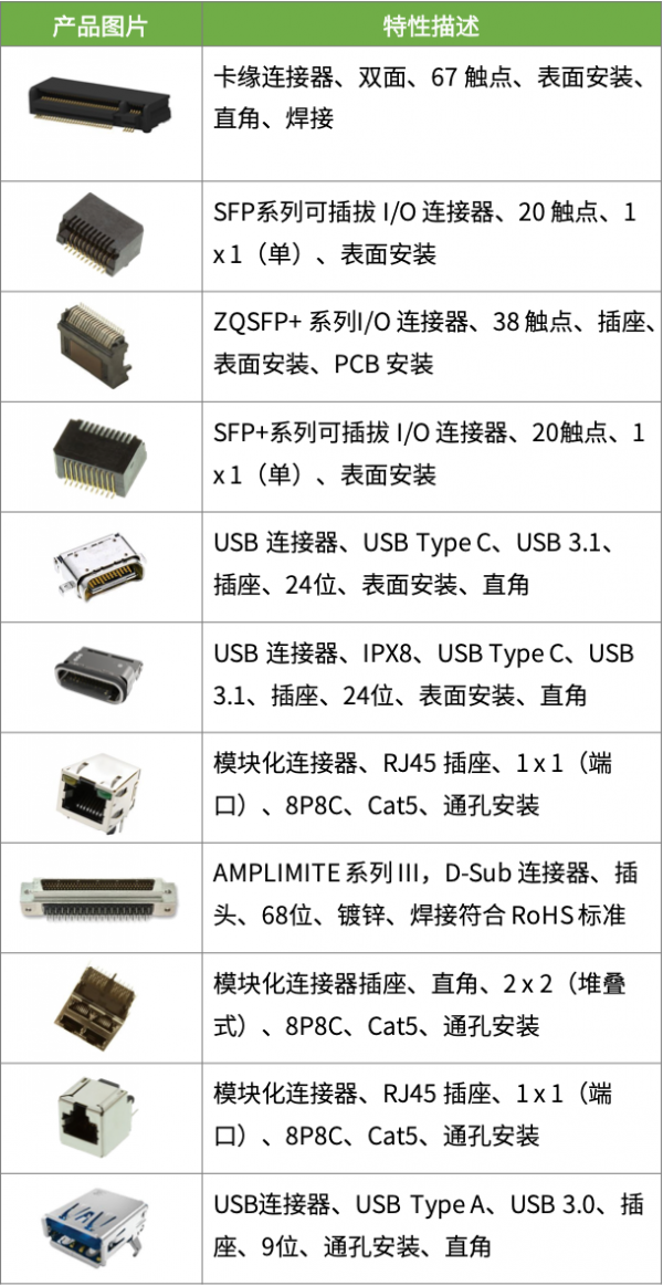 TE廣泛的I/O互連產(chǎn)品既有高速、高密度的I/O可插拔連接器,也有傳統(tǒng)的D-Sub和模塊化插座連接器,可以滿足從高速數(shù)據(jù)傳輸?shù)侥陀玫墓I(yè)通信等不同市場(chǎng)的需求,讓你在應(yīng)對(duì)數(shù)據(jù)速率和空間尺寸的挑戰(zhàn)時(shí)游刃有余。代表產(chǎn)品包括: