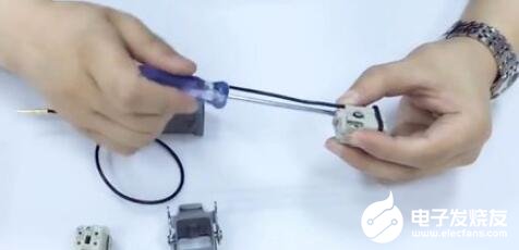 用螺絲刀將插體固定螺絲擰出,將插體放入上殼內(nèi),再將固定螺絲擰上。