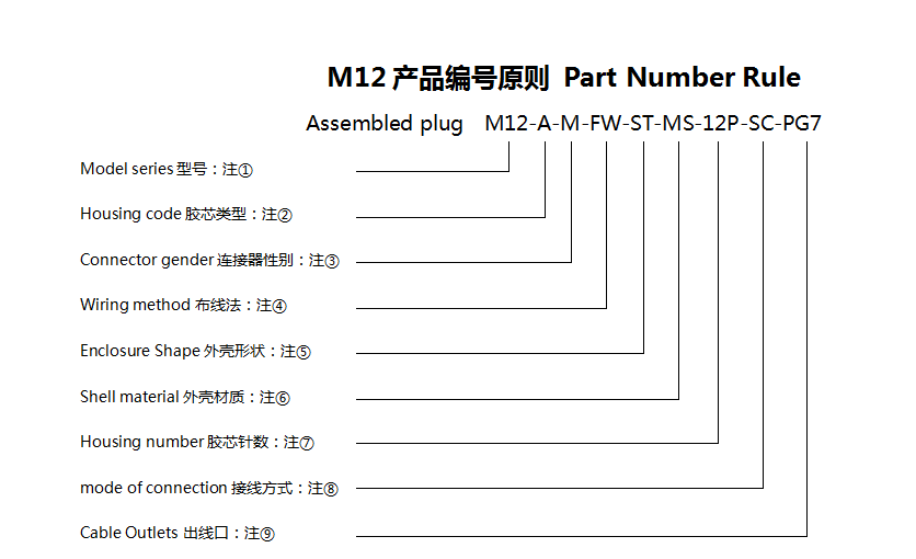 M12 Connector Part Number Coding Rule for Ordering