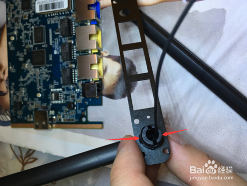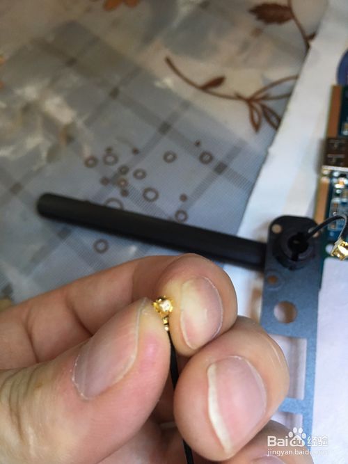 把擋板靠近路由板子,連接ipx接頭,要對(duì)準(zhǔn)用力壓一下,有“啪”的聲音就緊了。