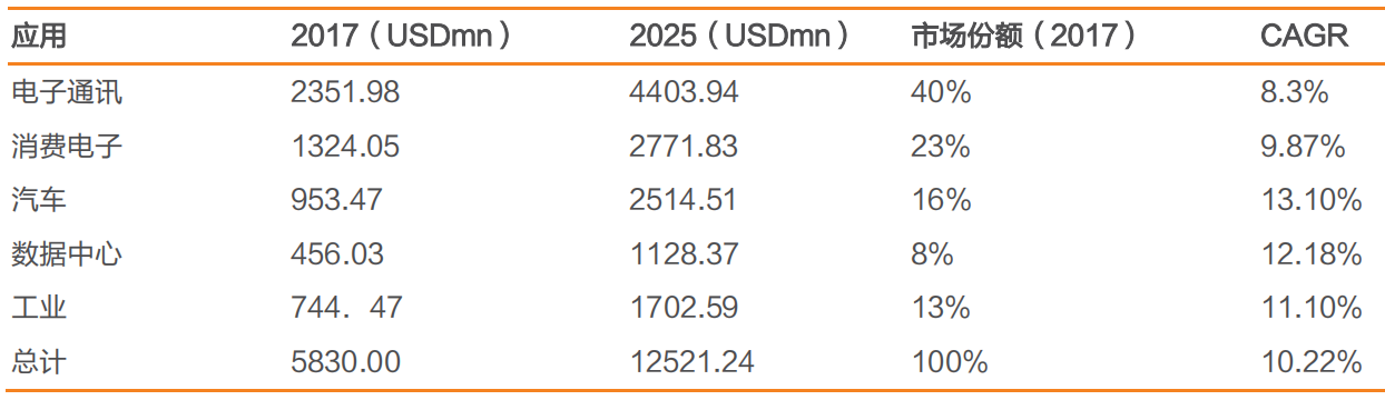 根據(jù)天風證券的預測,在5G等新興應用的推動下,2025年全球FPGA市場規(guī)模將達到125億美元左右,年復合增長率為10.22%。其中電子通信應用市場規(guī)模將達到44億美元左右。