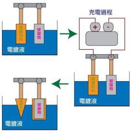 電鍍: 電鍍是指借外界電流的作用,在溶液中進(jìn)行電解反應(yīng),使需要涂覆的物質(zhì)表面沉積上一層均勻、致密的金屬或合金的過程。電鍍反應(yīng)原理是原電池反應(yīng)。電鍍時(shí)陽極發(fā)生氧化反應(yīng),溶解失去電子,金屬原子變成陽離子;陰極發(fā)生還原反應(yīng), 金屬陰離子得到電子,形成鍍層。