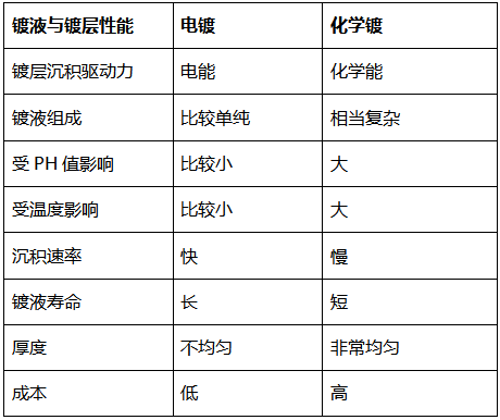 化學(xué)鍍與電鍍最大的不同,不需要外電流。化學(xué)鍍鍍層厚度均勻,針孔率低。