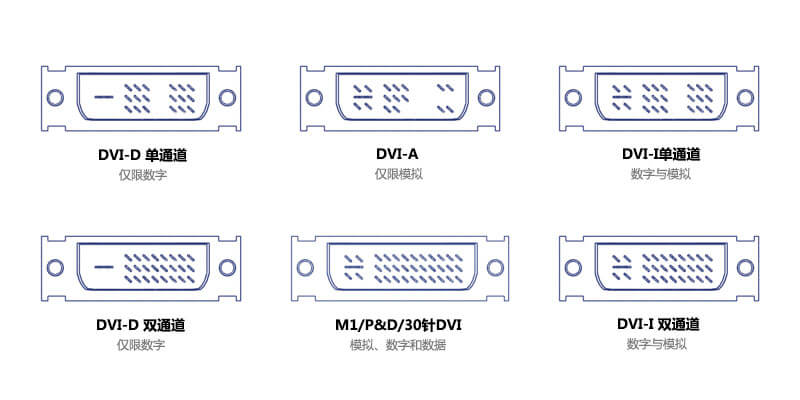 - 分為DVI-A、DVI-D和DVI-I三種不同類型的接口形式。