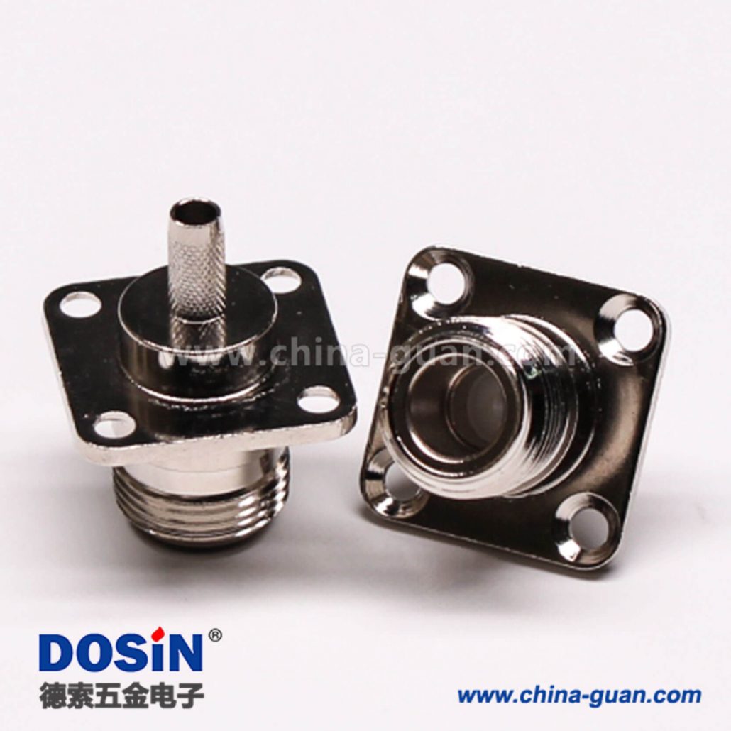 法蘭N型射頻接頭直式母頭四孔法蘭壓接式接同軸線纜