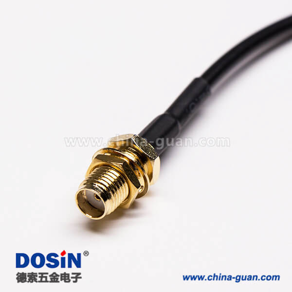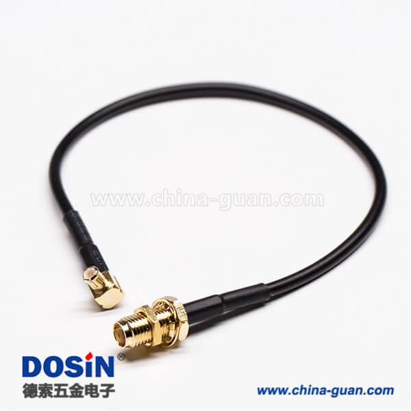 MCX射頻同軸線彎式公頭轉(zhuǎn)SMA直式母頭前鎖穿墻