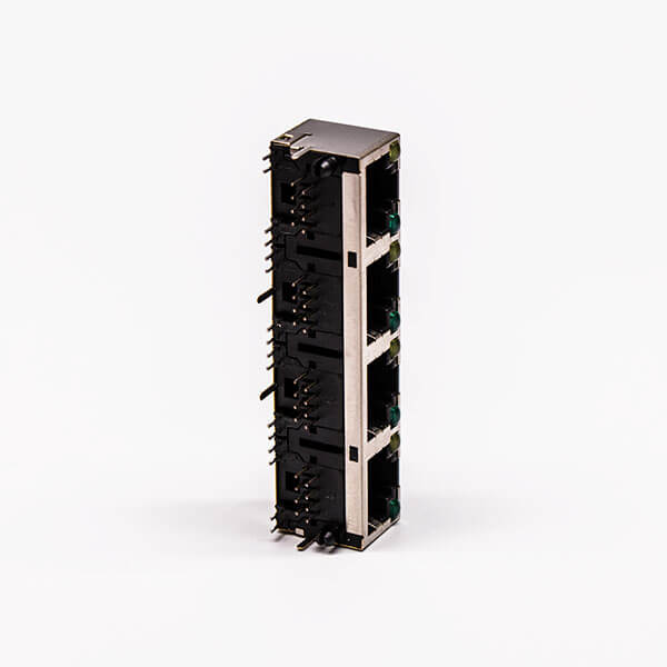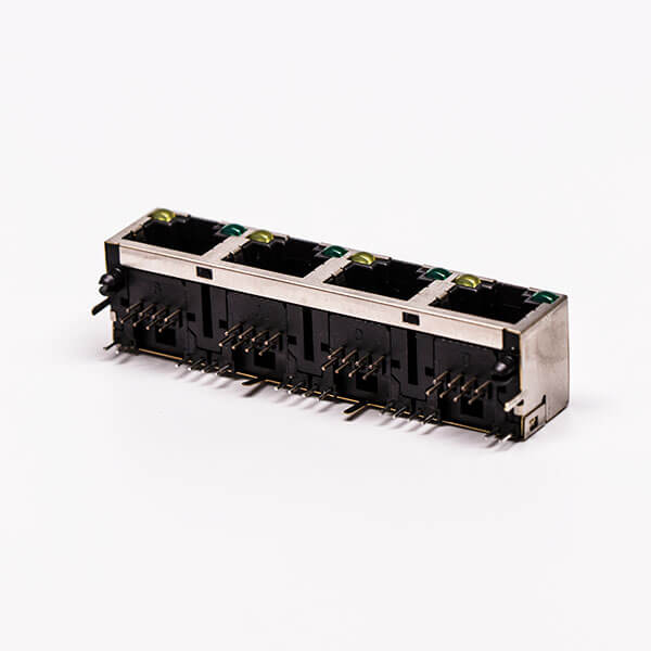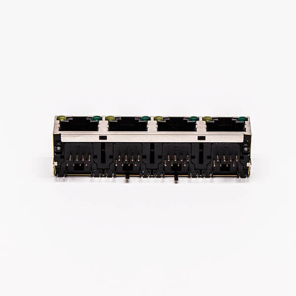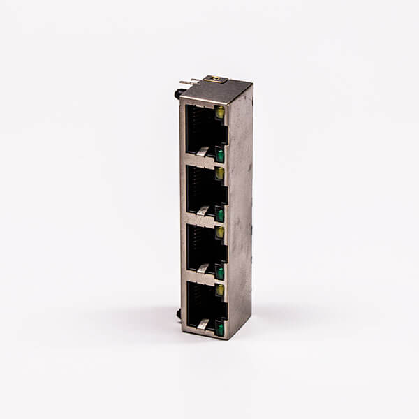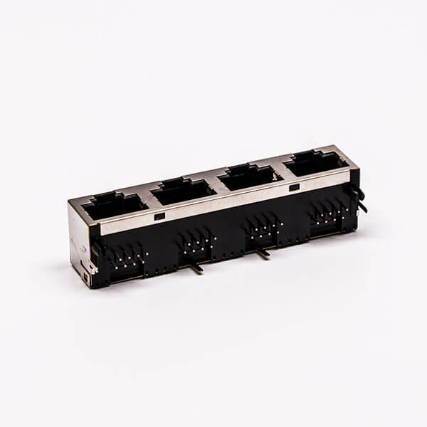 料號:DOSIN-819-0514 標簽:RJ45,母座,PCB板,8P,四口,彎式,帶屏蔽,不帶燈,銅殼