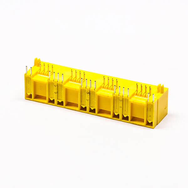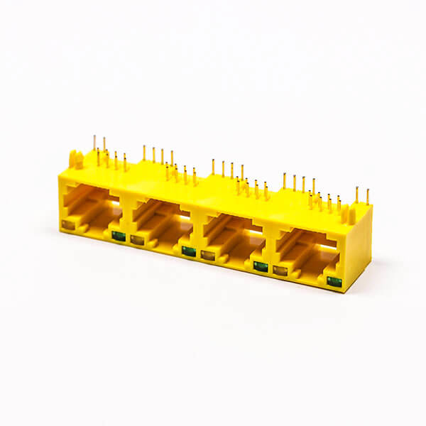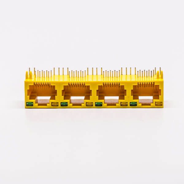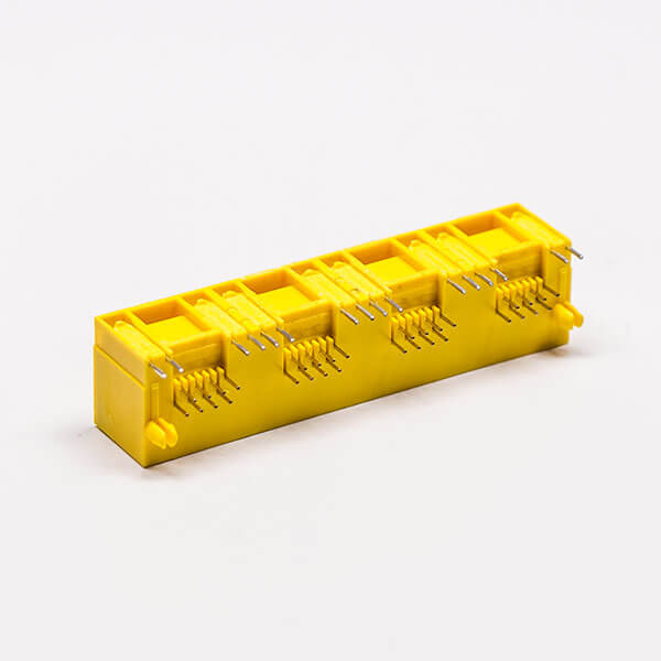 料號:DOSIN-819-0519 標簽:RJ45,母座,PCB板,8P,四口,彎式,不帶屏蔽,帶燈,黃色,全塑