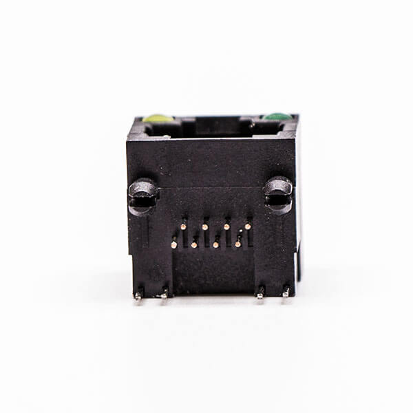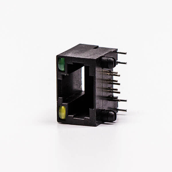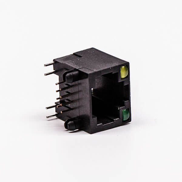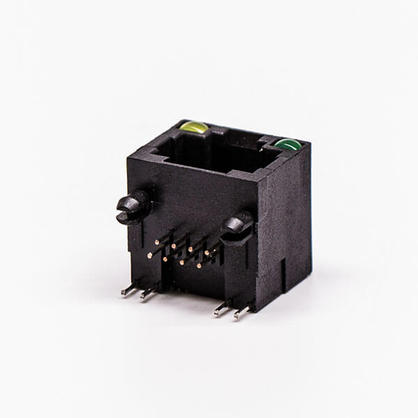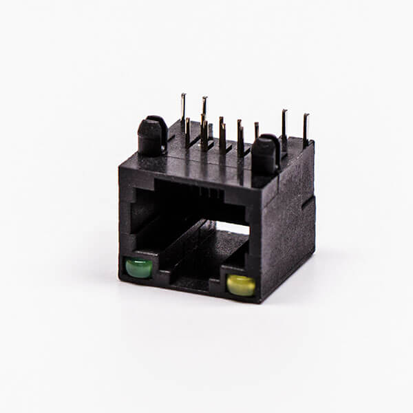 料號:DOSIN-819-0522 標簽:RJ45,母座,PCB板,8P,單口,彎式,不帶屏蔽,帶燈,黑色,全塑