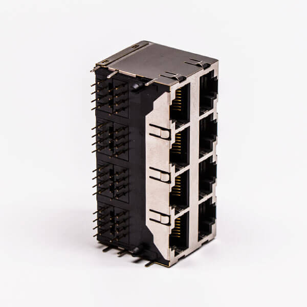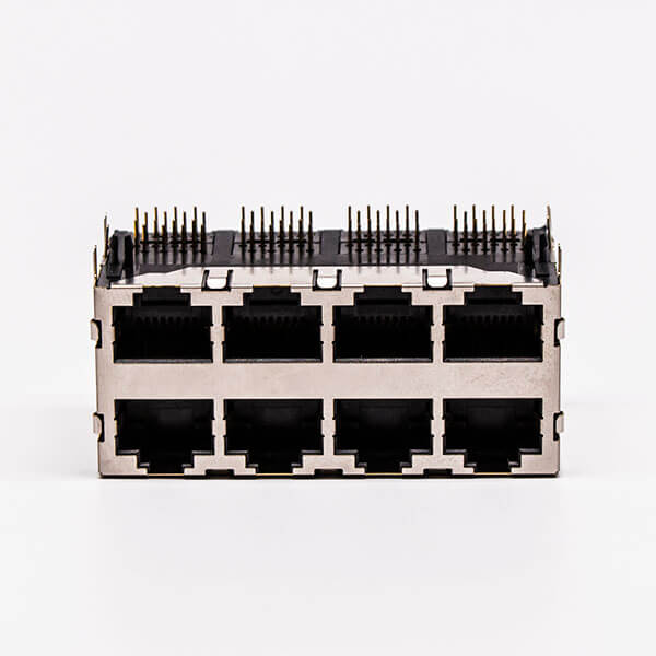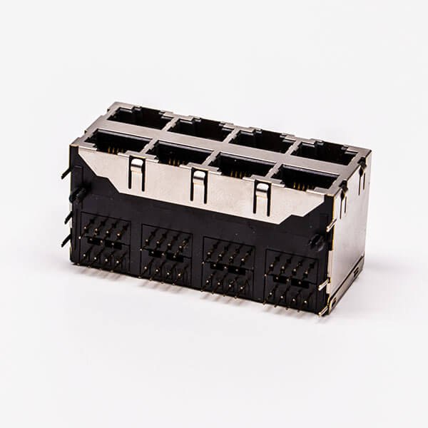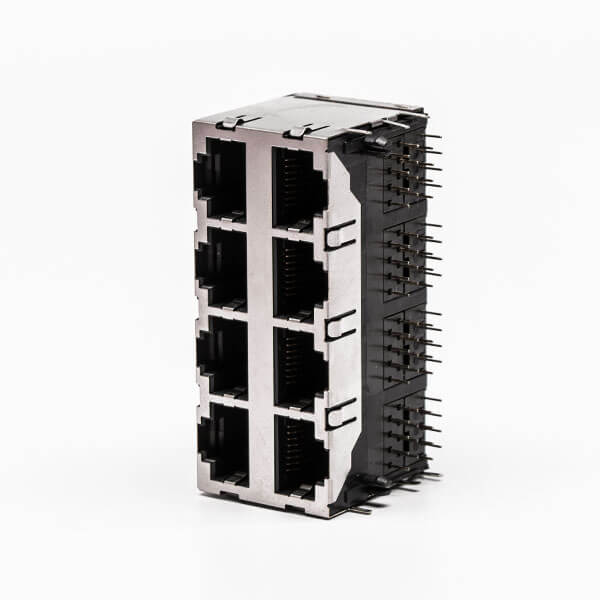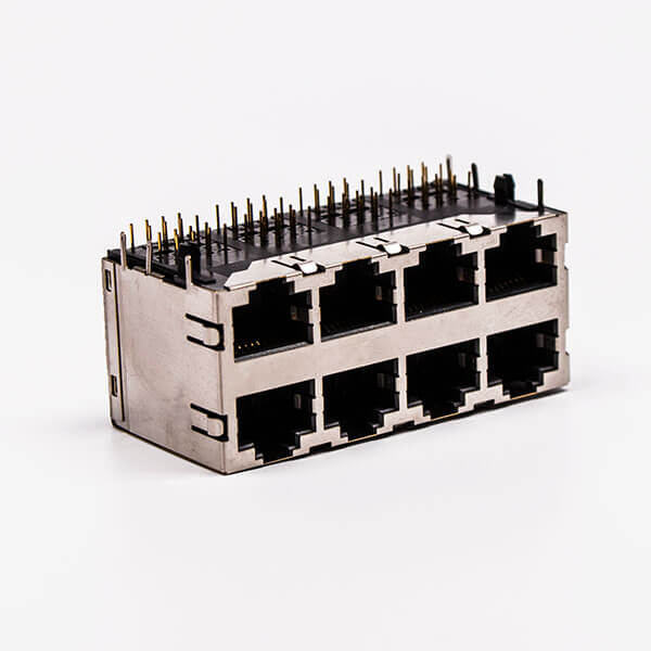 料號:DOSIN-819-0531 標簽:RJ45,母座,PCB板,2*4,雙排,八口,彎式,帶屏蔽,不帶燈,帶彈片