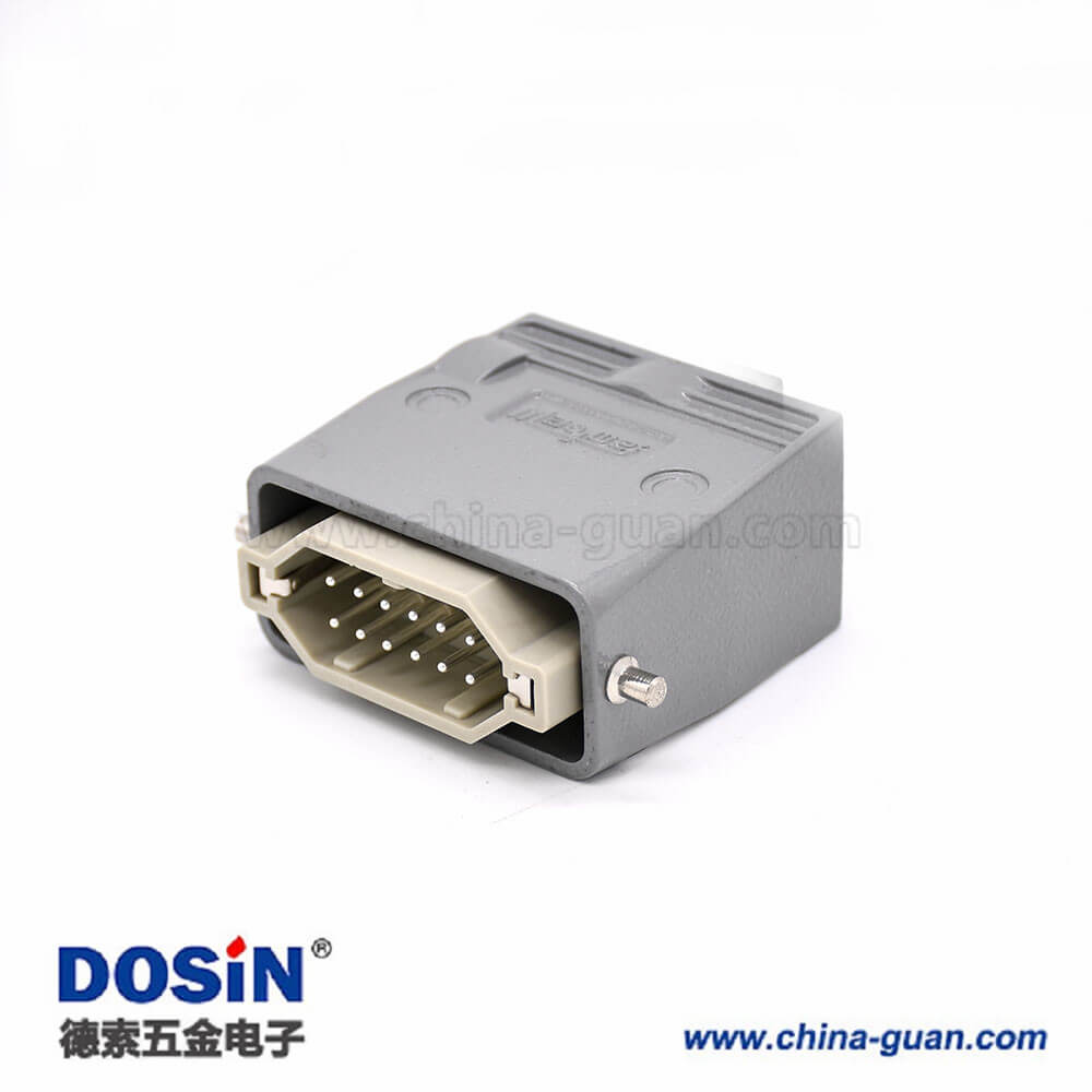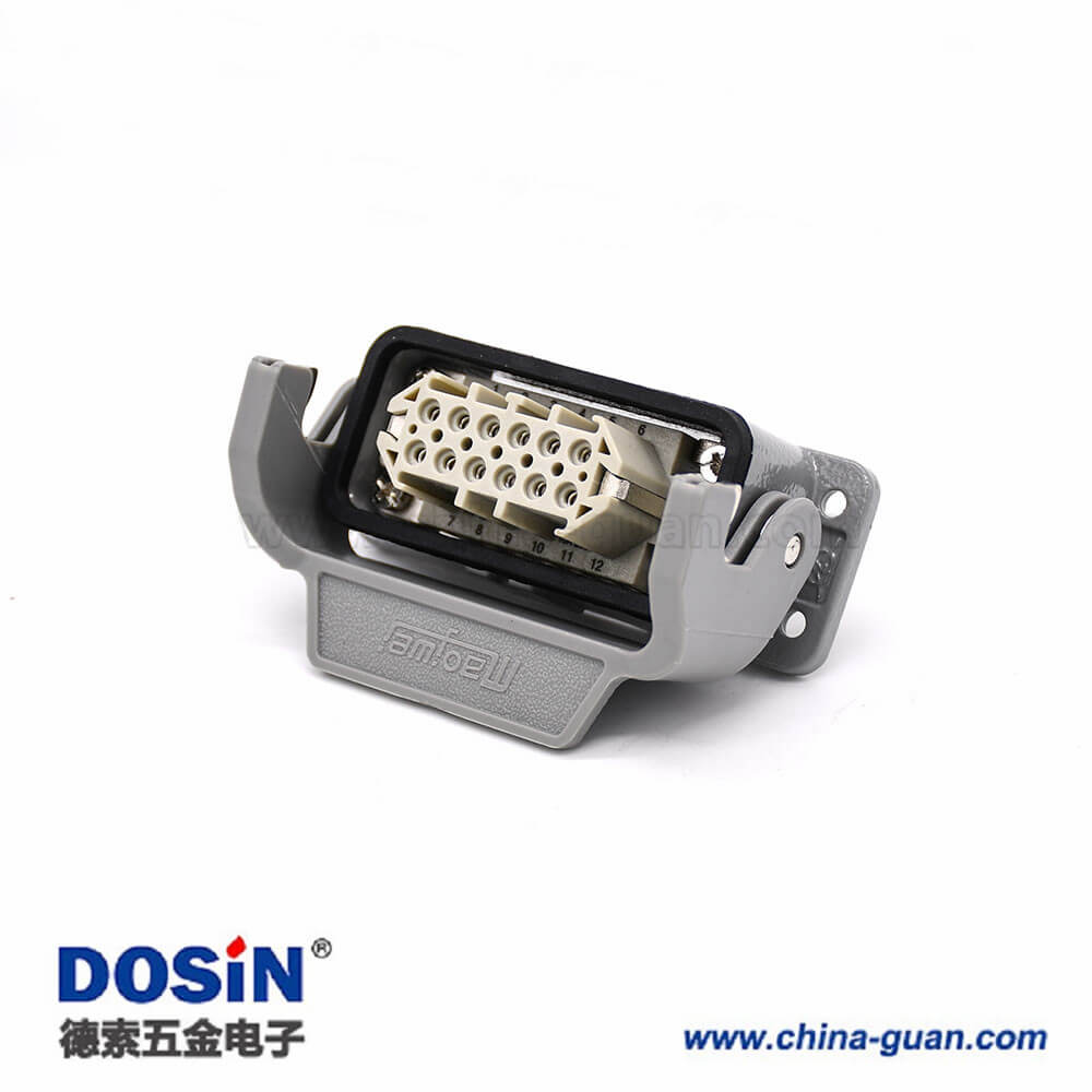 標簽:H10A,重載連接器,開孔安裝,2耳,單扣,斜出口,塑料鐵扣,12芯,鍍銀,公母對接,M25