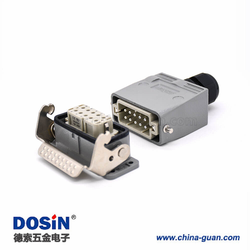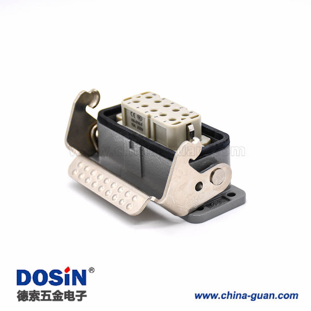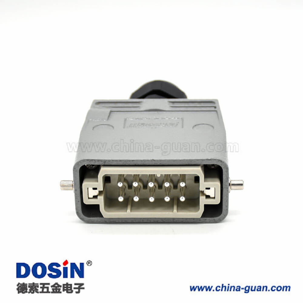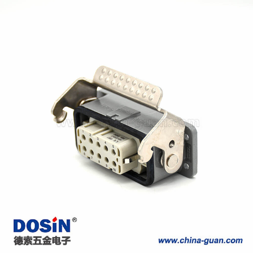 標(biāo)簽:H10A,重載連接器,開孔安裝,2耳,單扣,頂出口,鐵扣,10芯,鍍銀,公母對接,M25