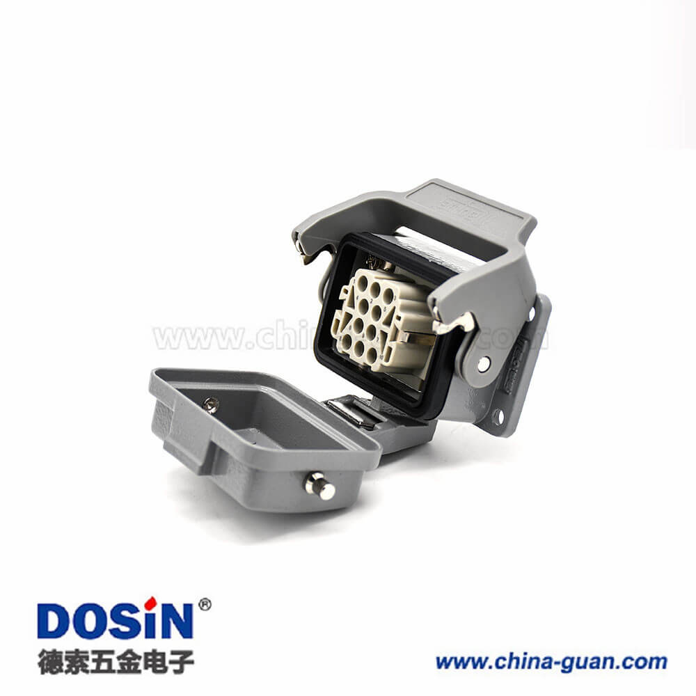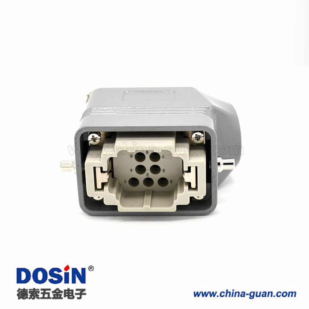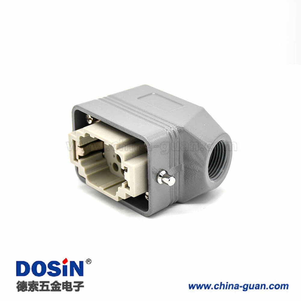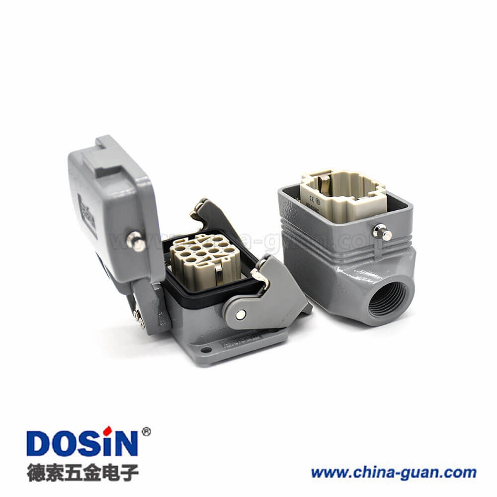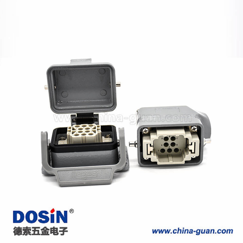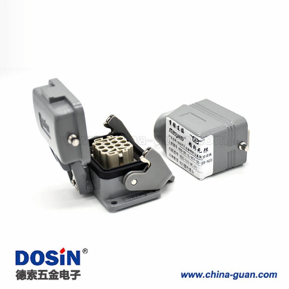 標(biāo)簽:H6B,重載連接器,開孔安裝,2耳,單扣,斜出口,塑料鐵扣,不帶針公頭,10芯,公母對接,M20