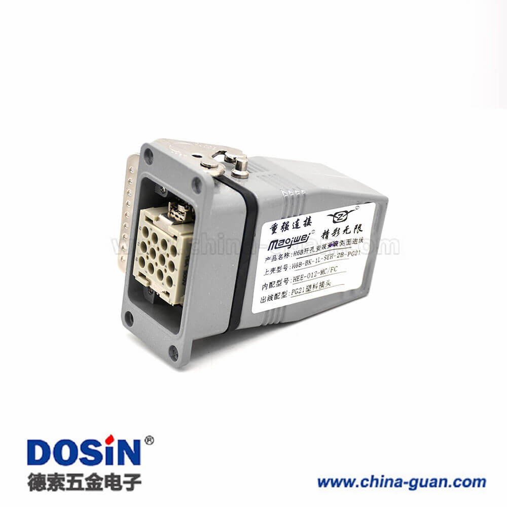 標(biāo)簽:H6B,重載連接器,開孔安裝,2耳,單扣,高結(jié)構(gòu)斜出口,鐵扣,不帶針公頭,12芯,公母對(duì)接,PG21