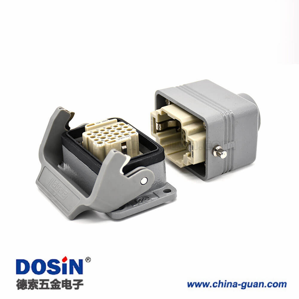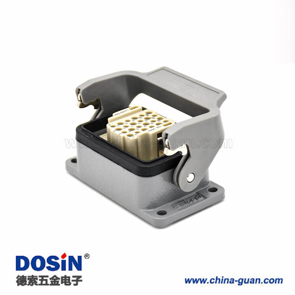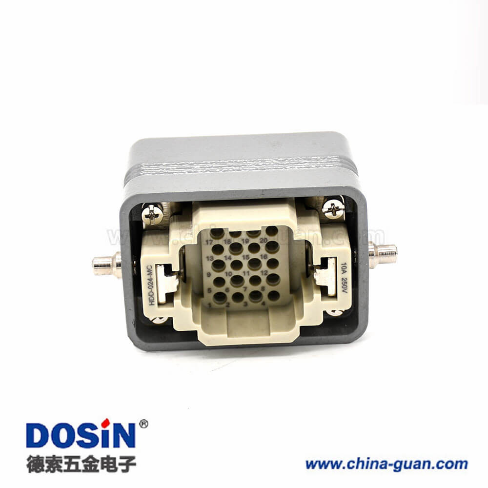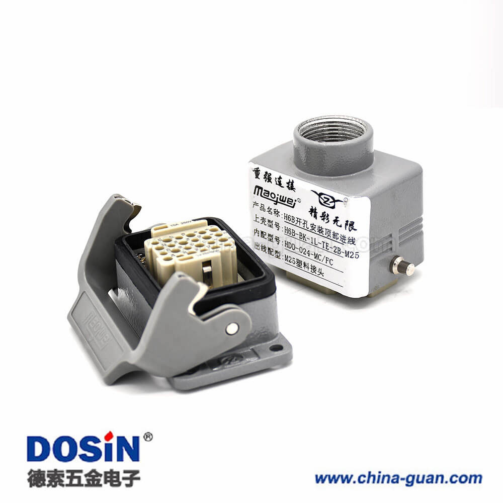 標(biāo)簽:H6B,重載連接器,開孔安裝,2耳,單扣,頂出口,塑料鐵扣,不帶針公頭,24芯,公母對接,M25