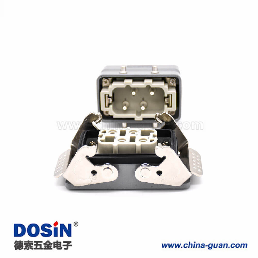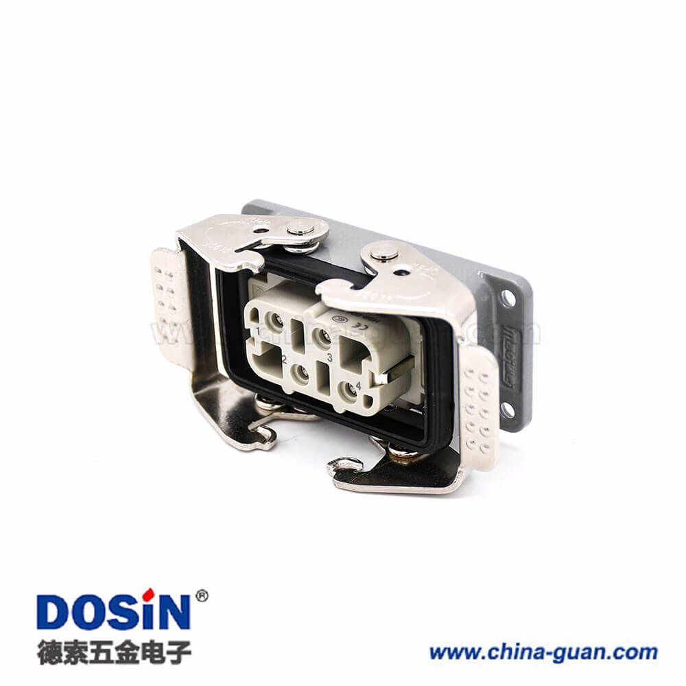 標(biāo)簽:H10B,重載連接器,開孔安裝,4耳,兩扣,頂出口,鐵扣,4芯,鍍銀,公母對(duì)接,M25