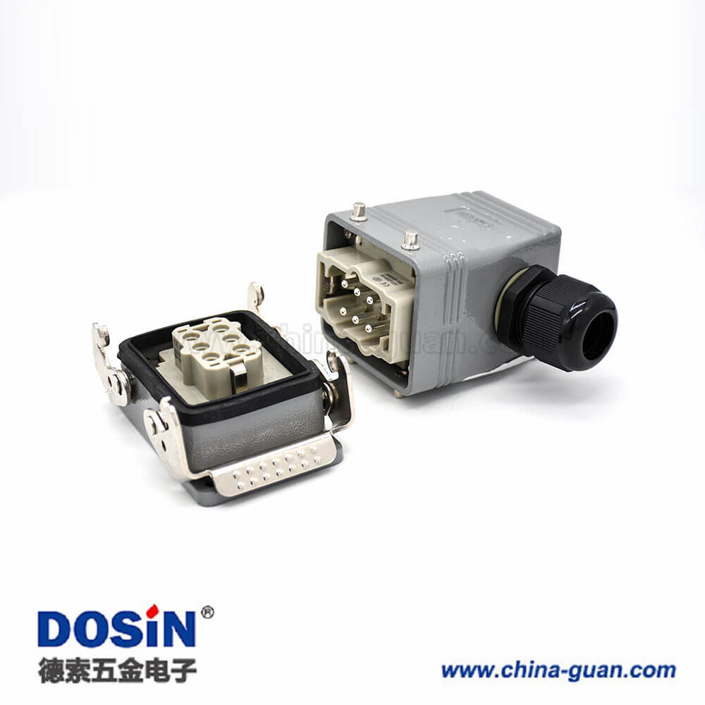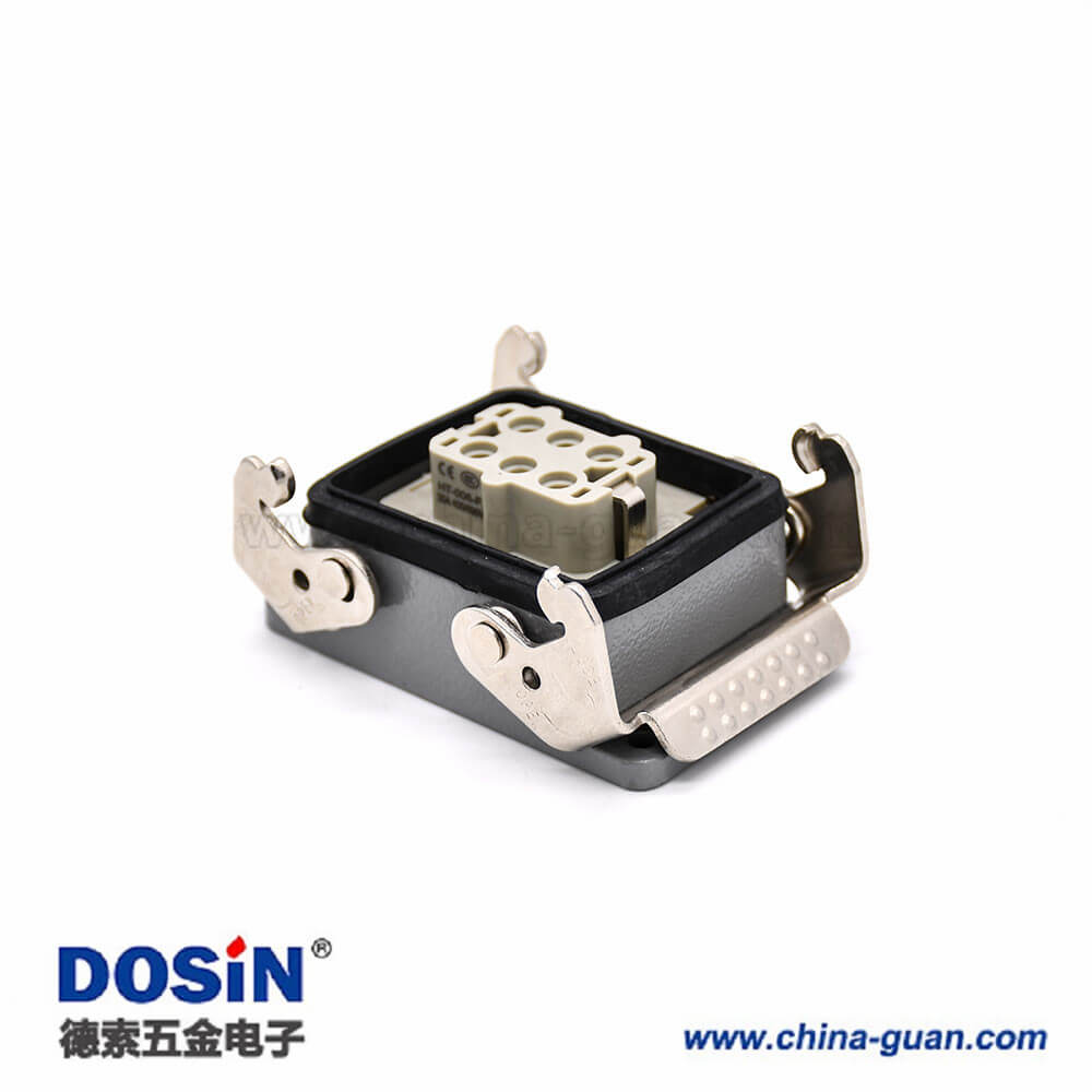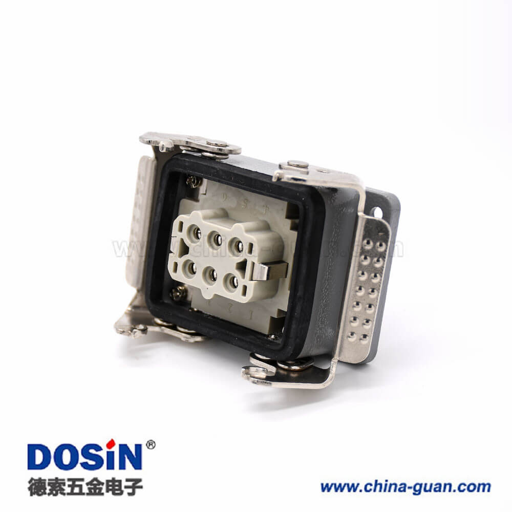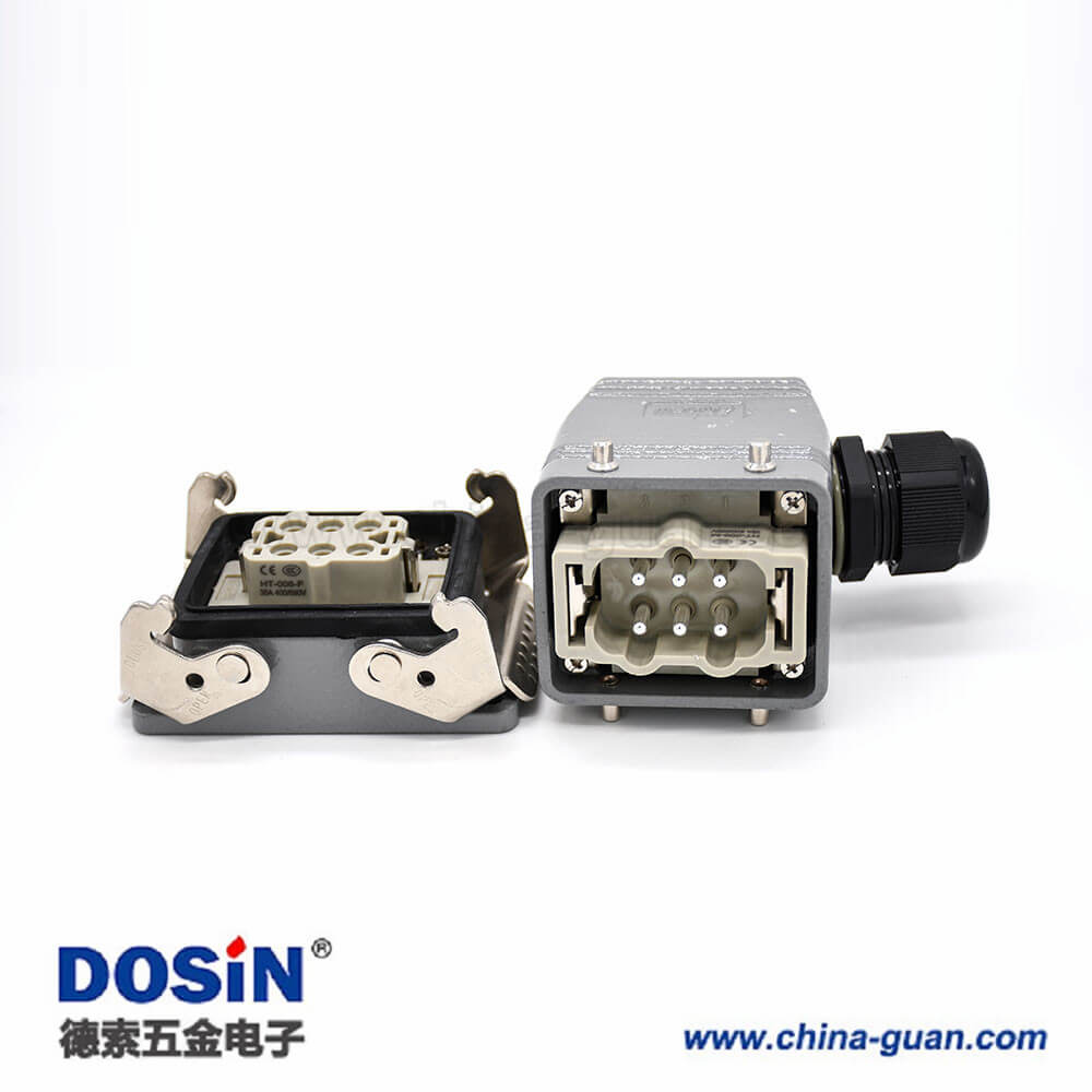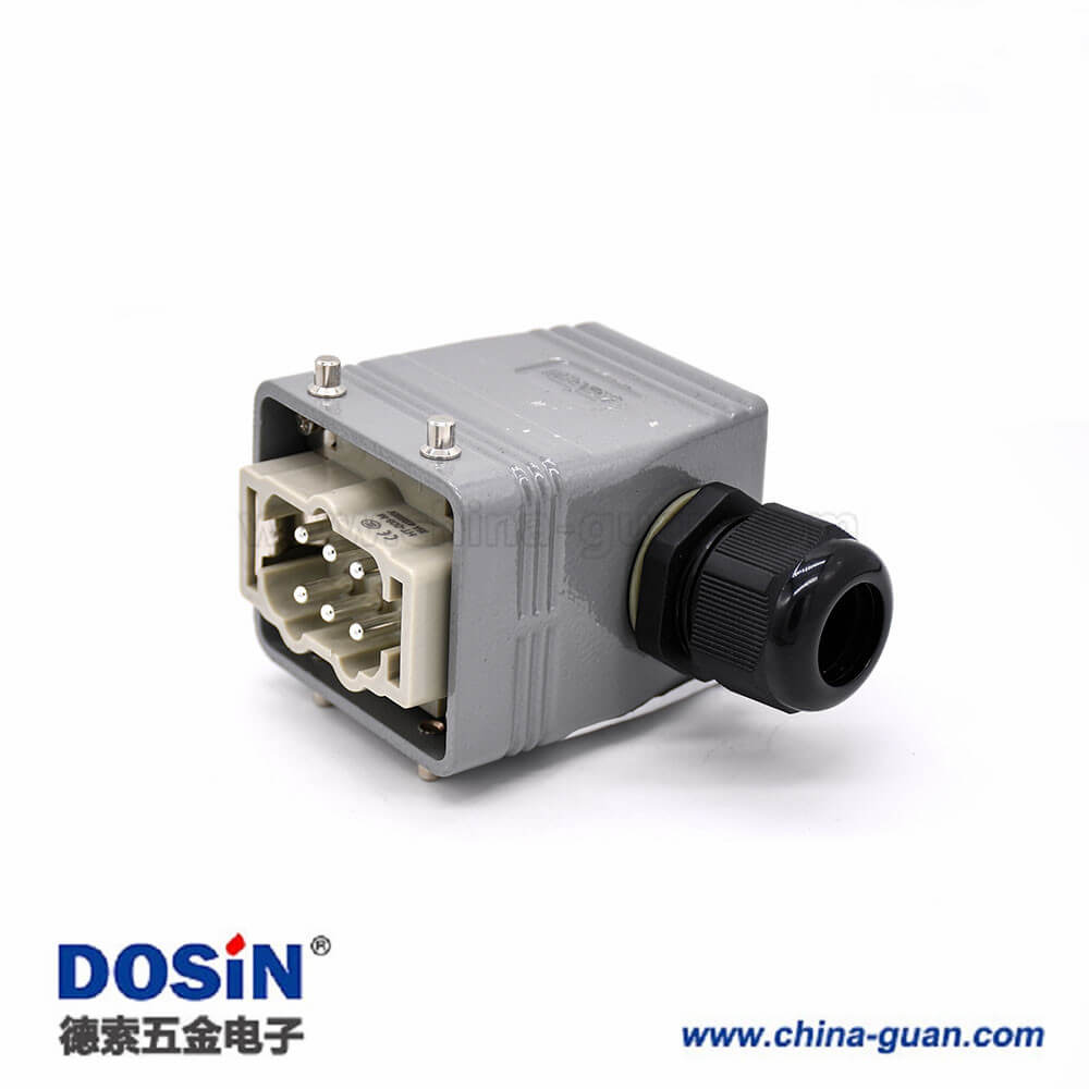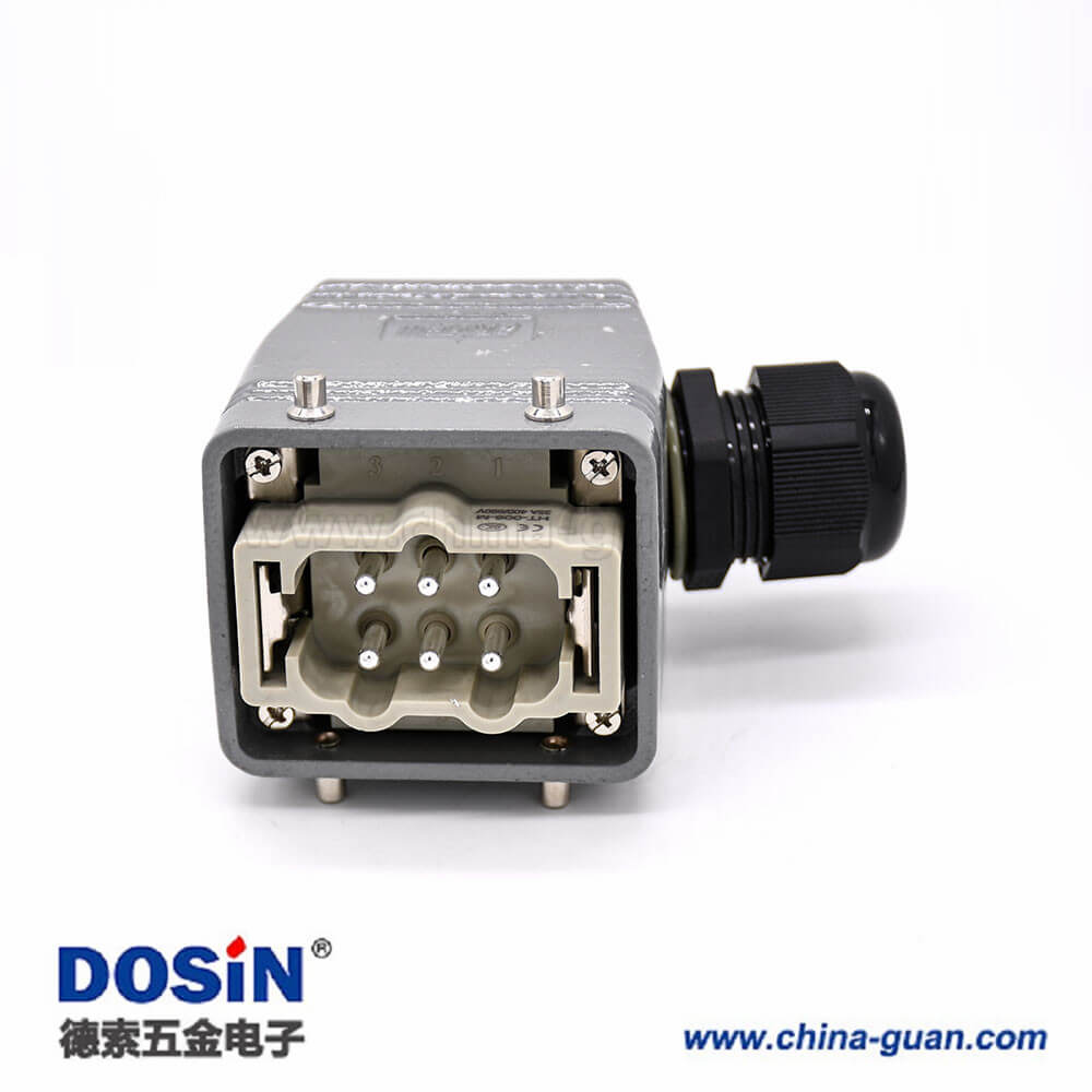 標簽:H6T,重載連接器,開孔安裝,4耳,兩扣,高結(jié)構(gòu)斜出口,鐵扣,6芯,鍍銀,公母對接,PG21