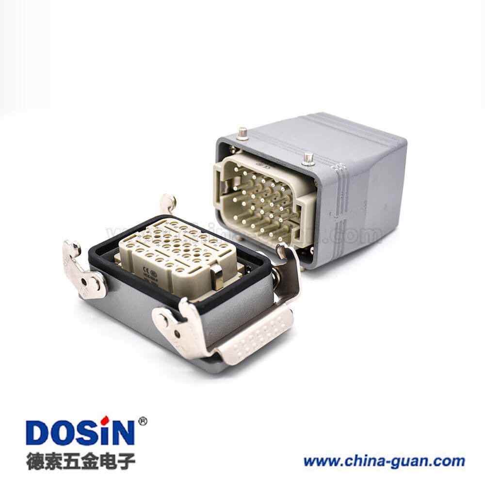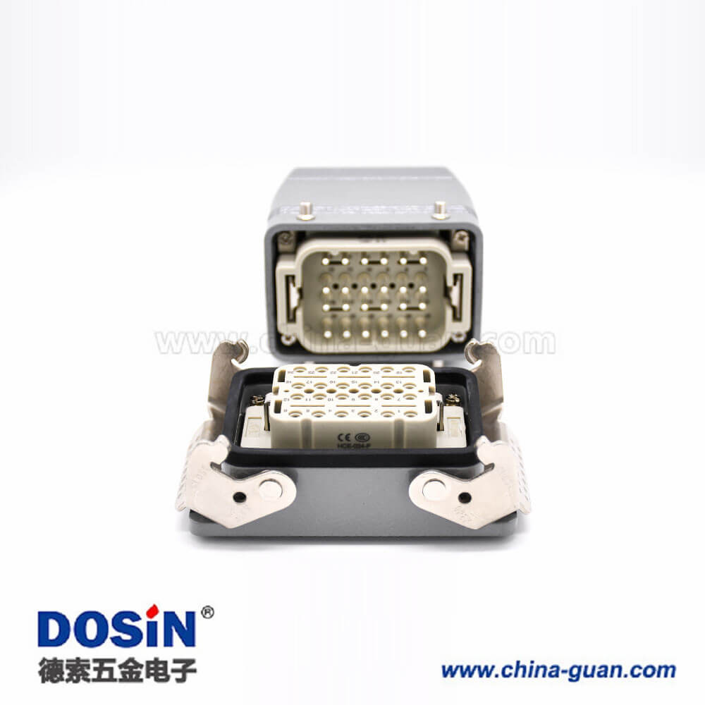 標簽:H10T重載連接器,開孔安裝,高結構頂出口,鐵扣,四耳,兩扣,公母對接,24芯,鍍銀,PG29