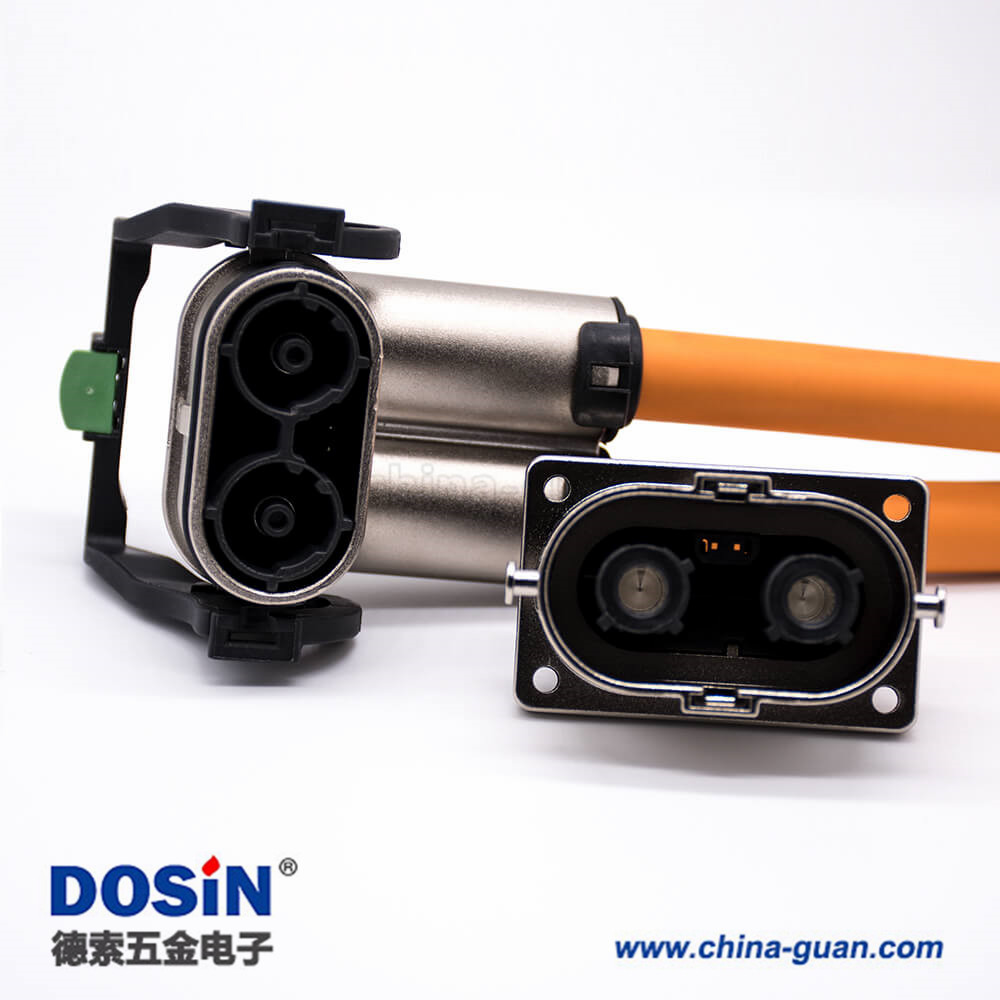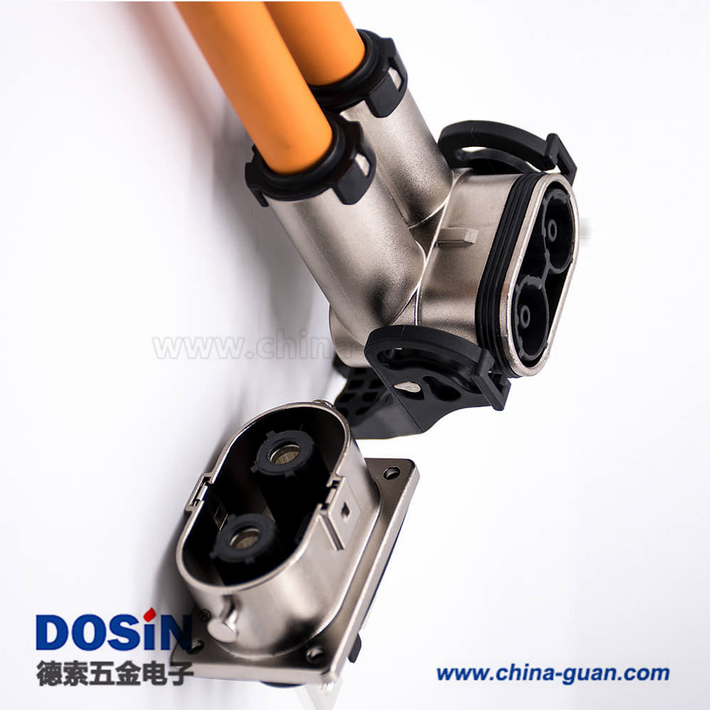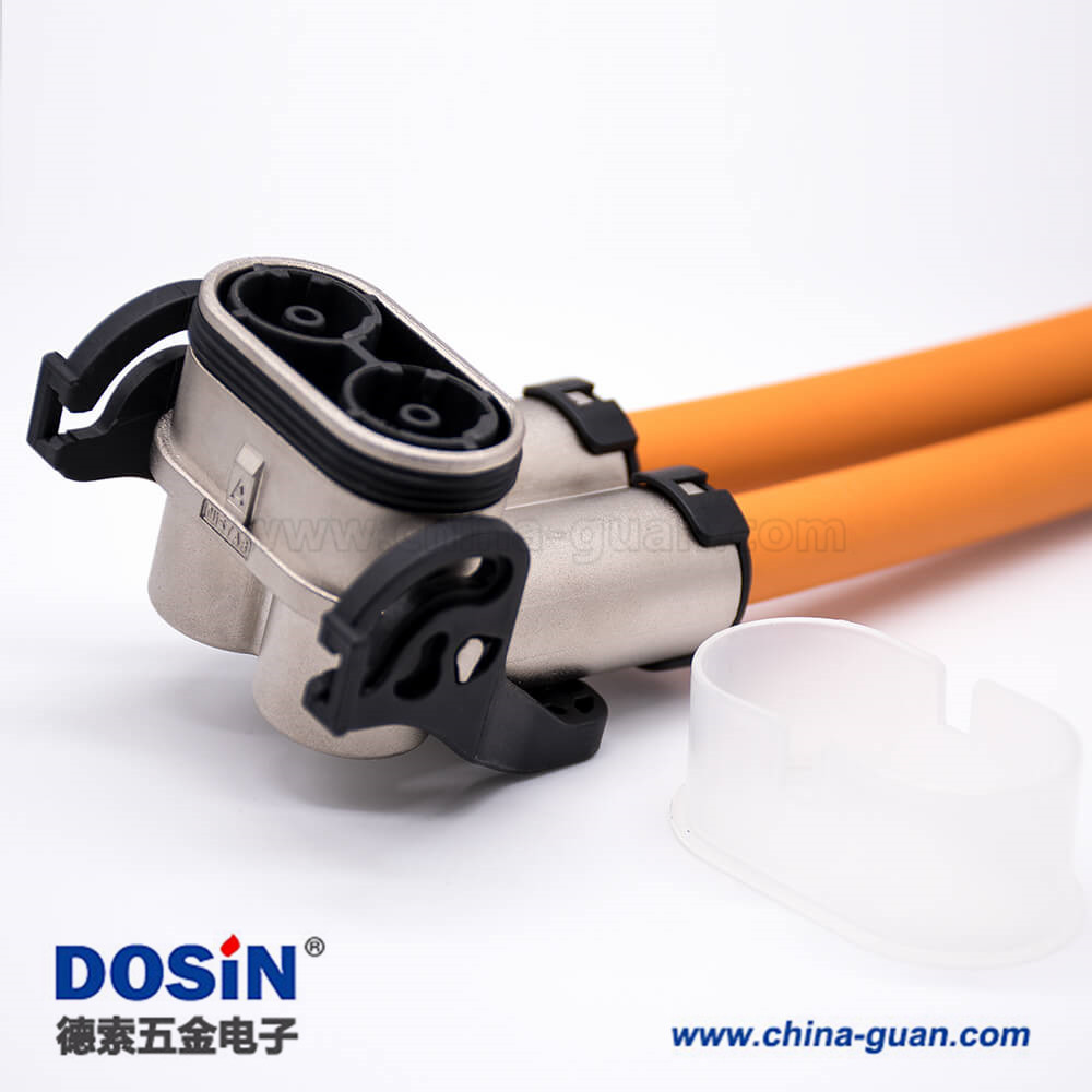 高壓互鎖插頭125A彎式2芯金屬外殼接線15CM連接線