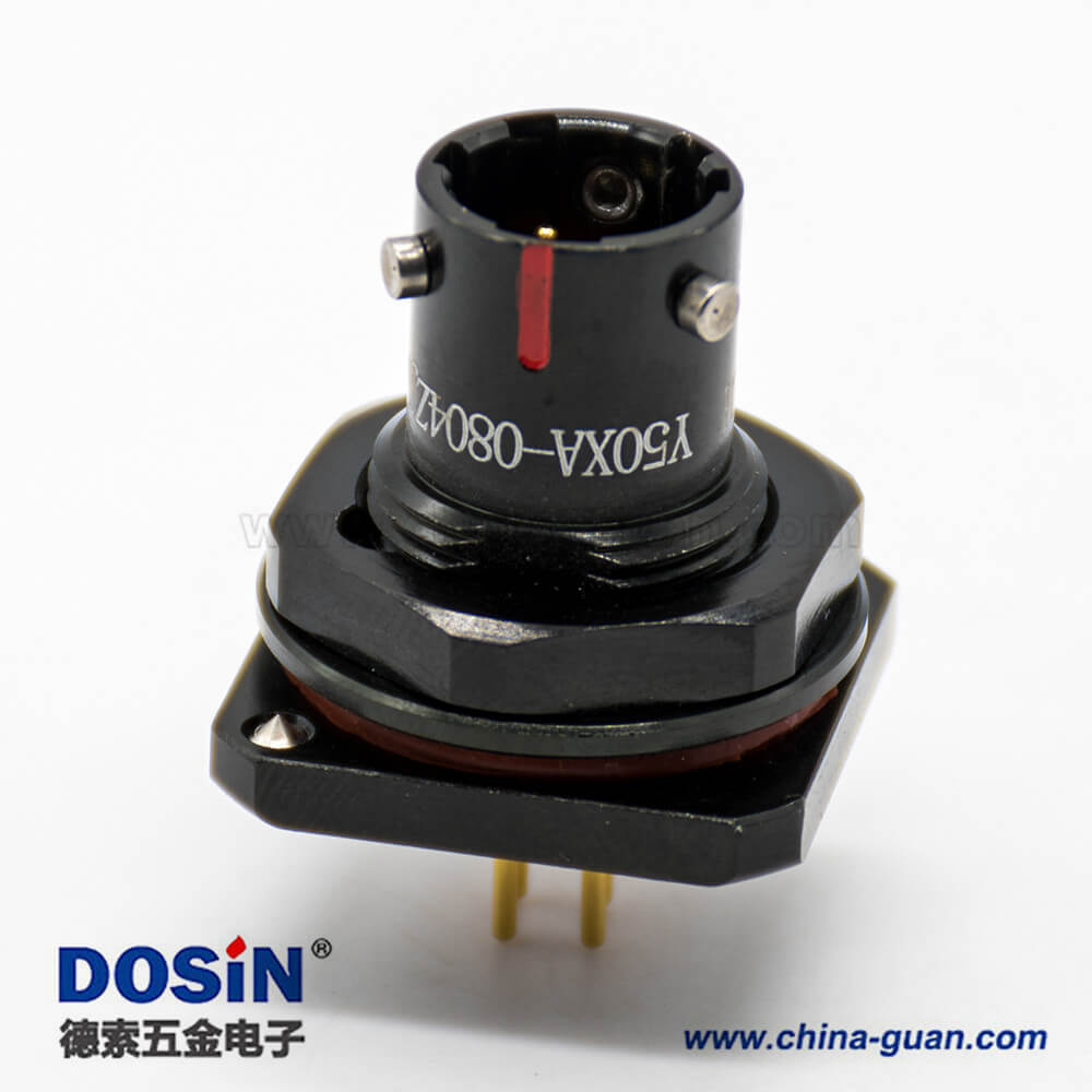 航空電連接器Y50X系列4芯08殼體防水插座面板安裝接PCB前鎖板插頭接線焊接直式公母對接