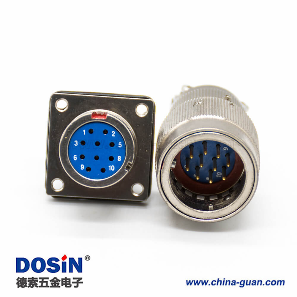 10芯連接器4孔法蘭焊杯插頭&插座卡口連接Y27G公母對(duì)接電纜式直式工防黃銅