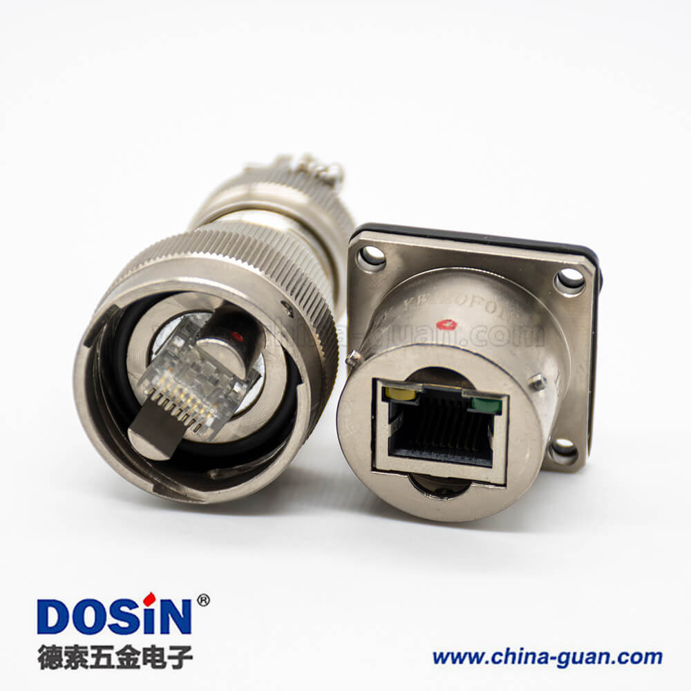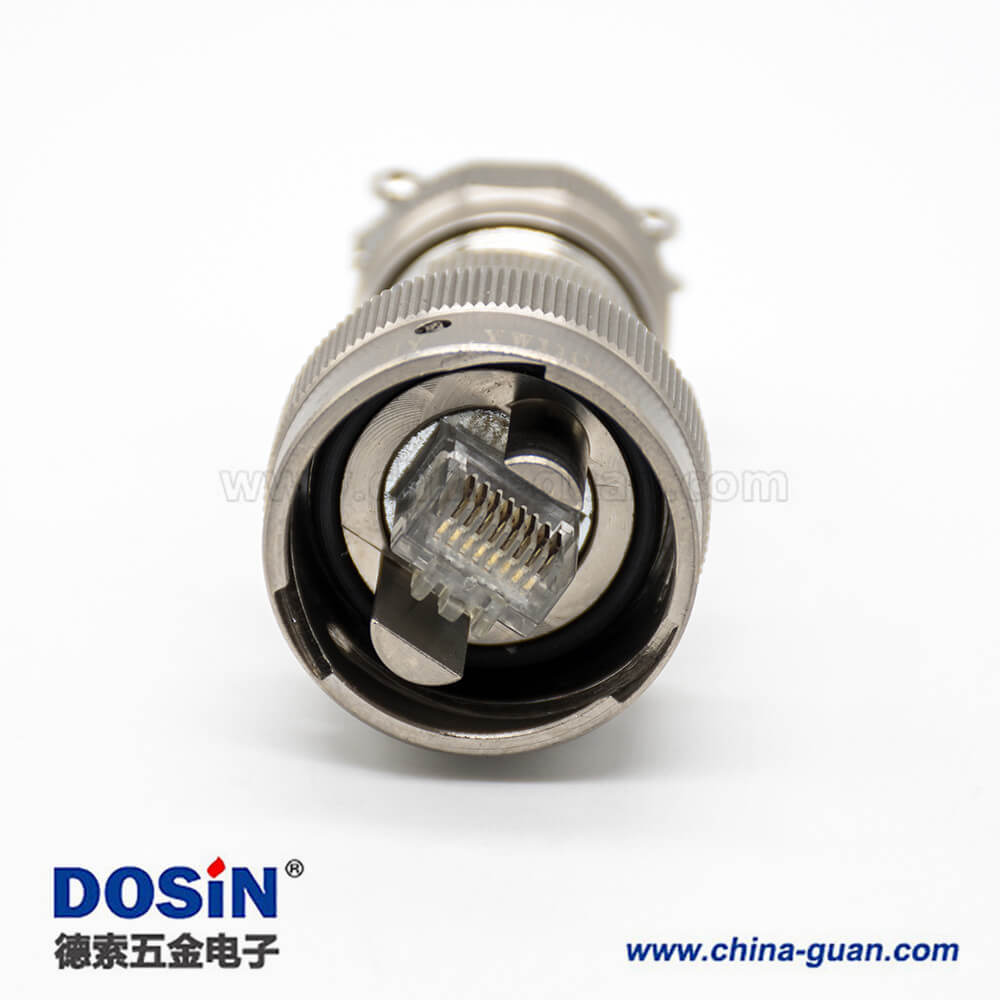 YW圓形RJ-45內(nèi)置接口卡口連接公母對接插頭接線焊接插座面板安裝焊接4孔法蘭直式連接器