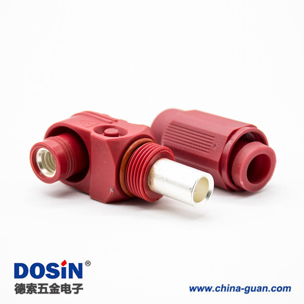 單芯防水連接器400A彎式插頭塑料IP67紅色14mm接線