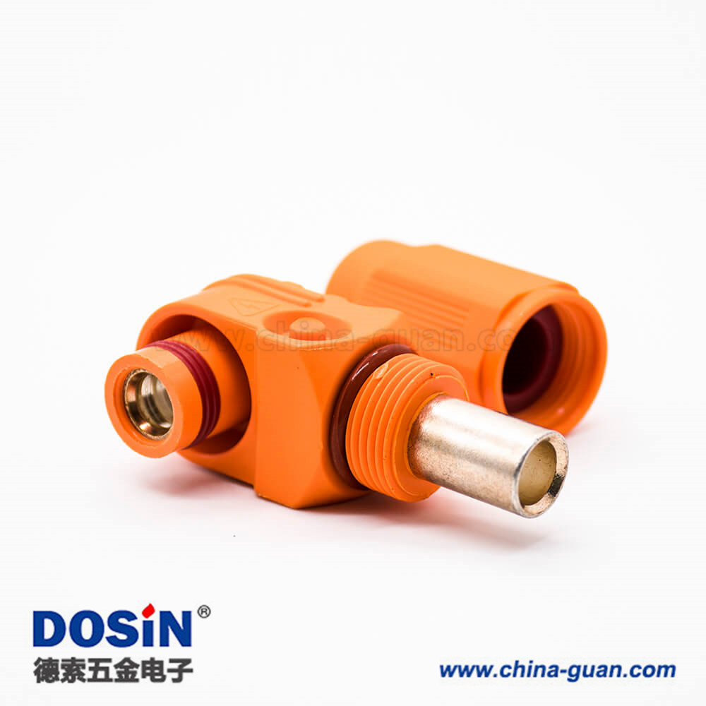 新能源電源儲能連接器14mm單芯塑料400A橙色IP67接線彎式插頭