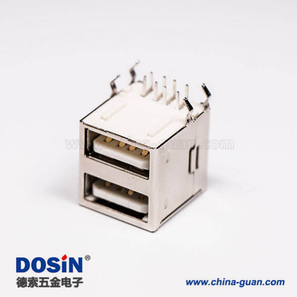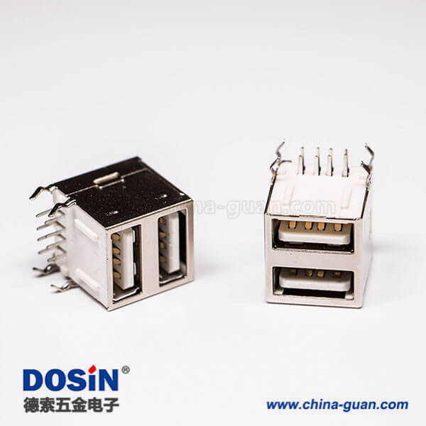 標(biāo)簽:USB2.0,母頭,雙端口,彎角,黑色膠芯,插板,Type A,接PCB板