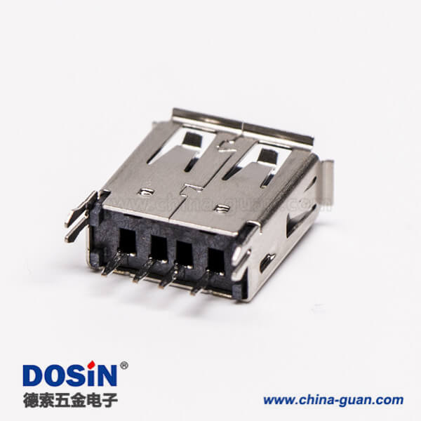 標簽:USB2.0,母頭,Type A,直式,插板,DIP,魚叉腳,黑色膠芯