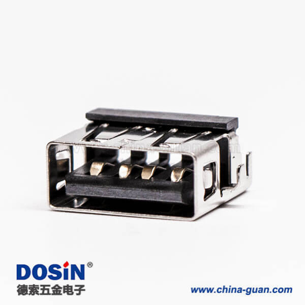 標(biāo)簽:USB2.0,母頭,Type A,彎式,DIP,兩腳,黑色膠芯,沉板