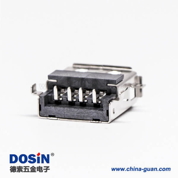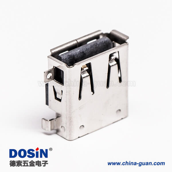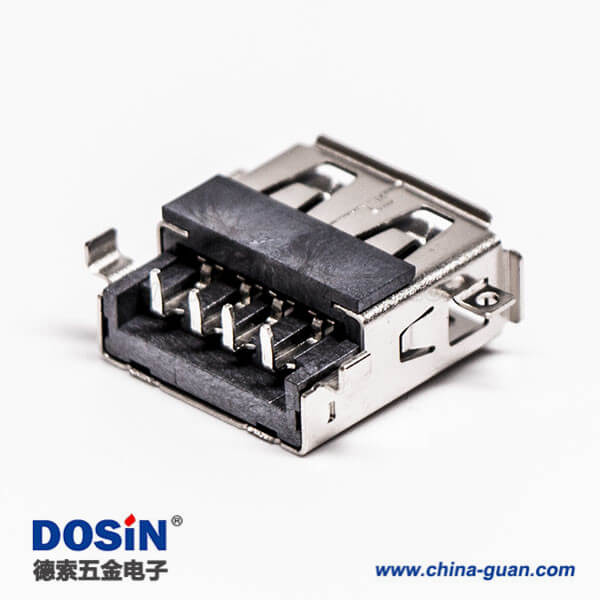 標簽:USB2.0,母頭,Type A,彎式,DIP,反向,黑色膠芯,沉板,插板