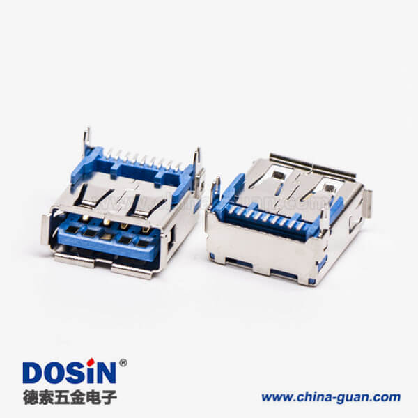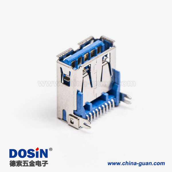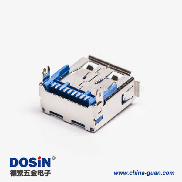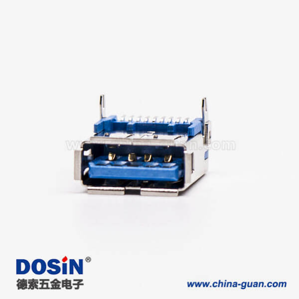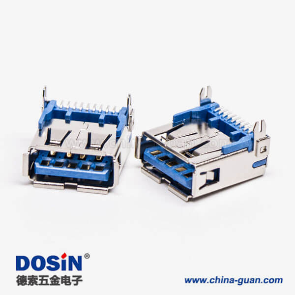 usb3.0母座彎頭smt貼片式藍色膠芯接PCB板