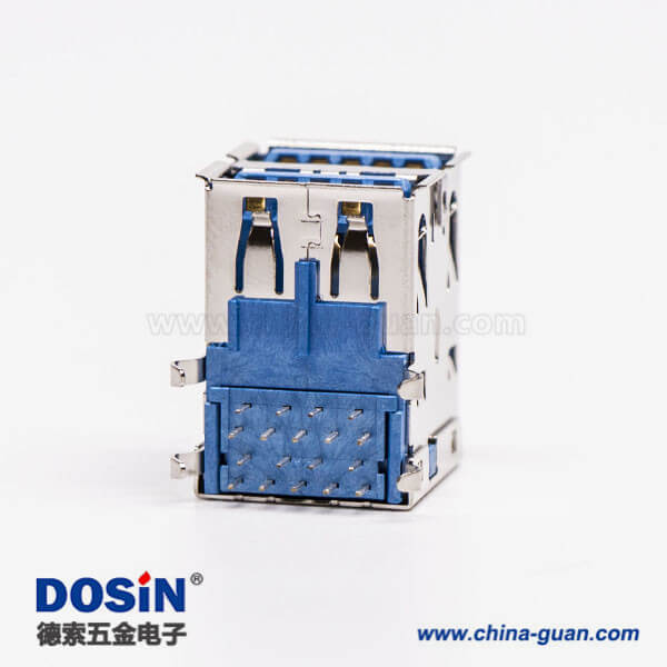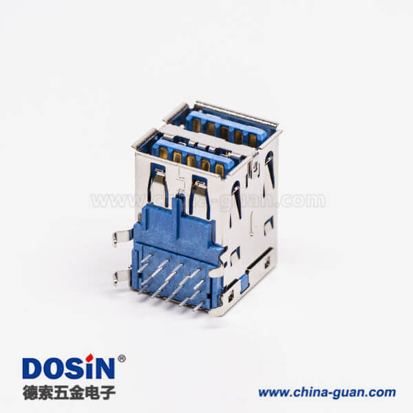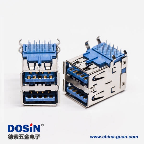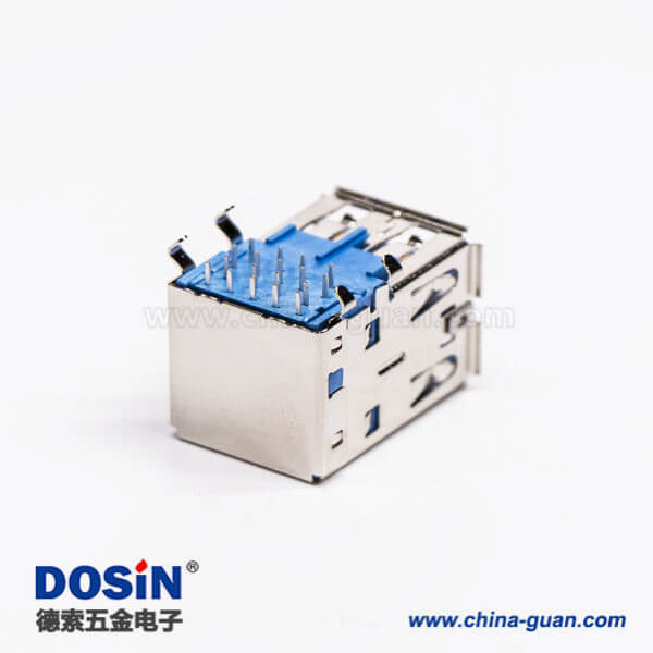 標(biāo)簽:USB3.0,Type A,雙端口,母頭,彎式,插板,DIP,藍(lán)色膠芯,PCB板