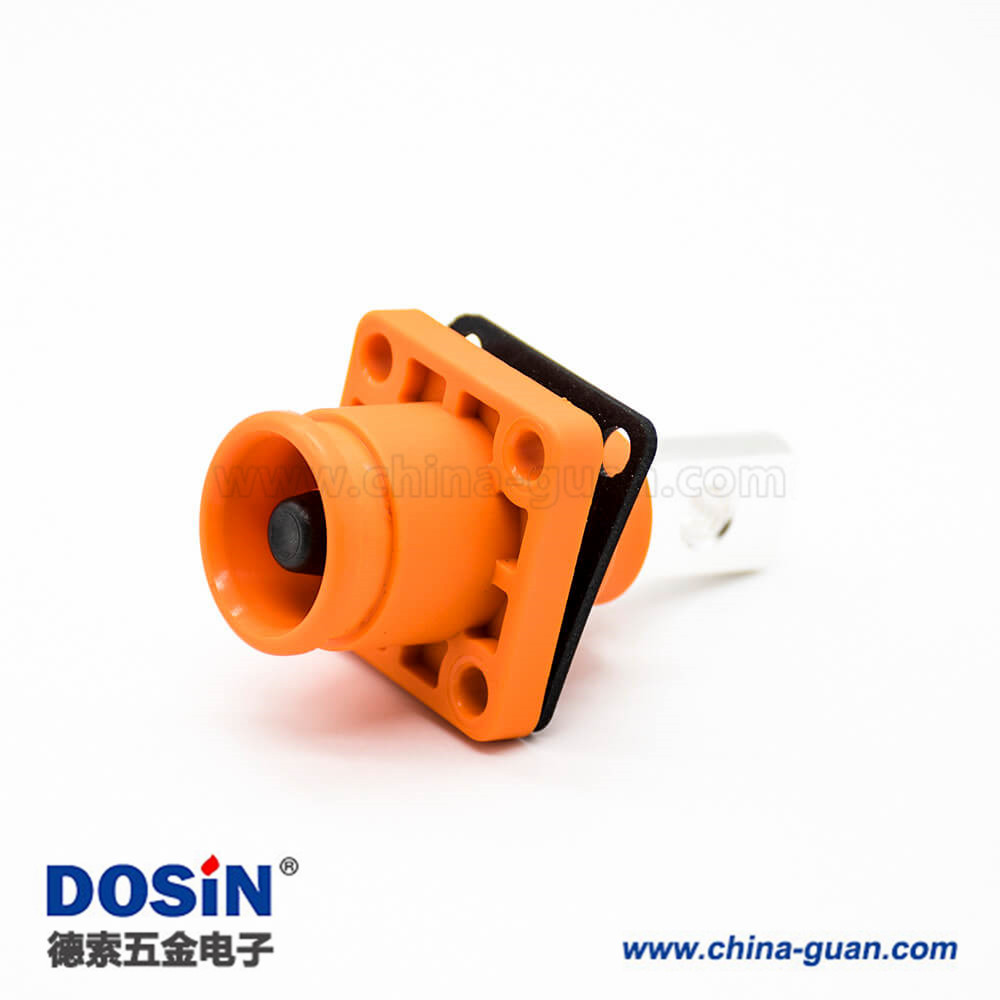 儲能電池連接器公母防水彎式插頭對接直插座單芯8mm200A橙色塑料銅牌連接