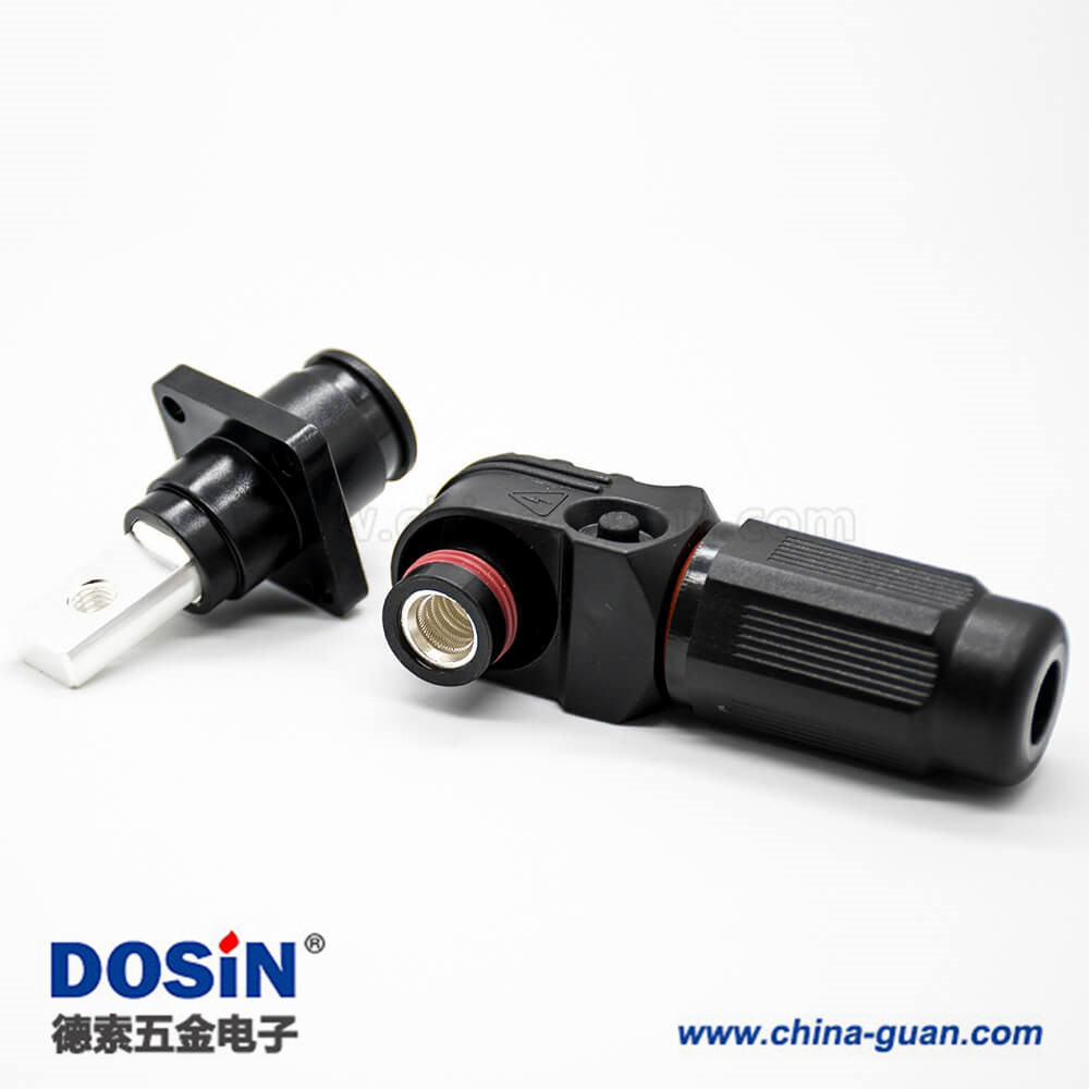 防水大電流連接器公母插座插頭直彎對接黑色8mm單芯塑料200A銅牌連接IP67