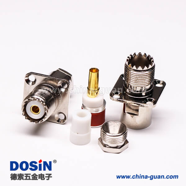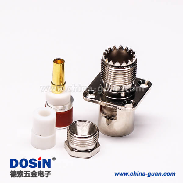 uhf同軸連接器母頭直式UHF-SL16-J-4螺母鎖緊帶法蘭接線
