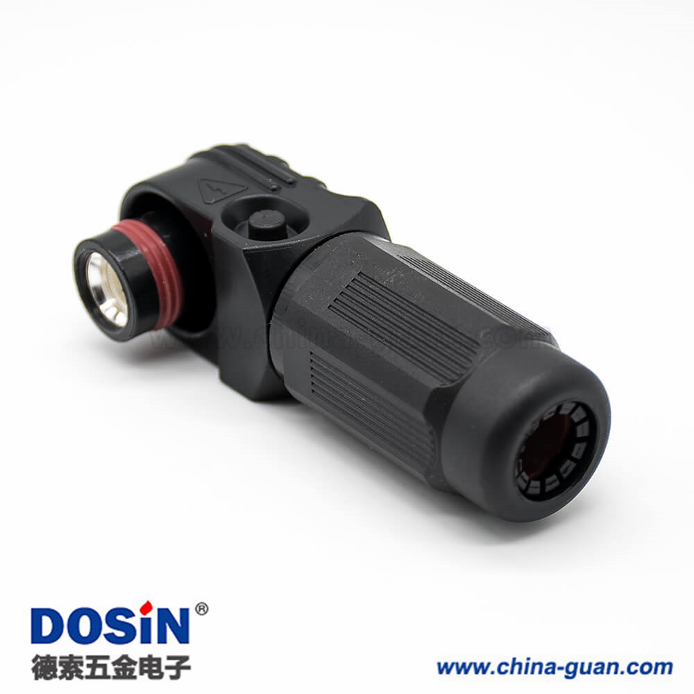 新能源高壓防水大電流連接器公插頭直角單芯12mm黑色350A塑料IP67