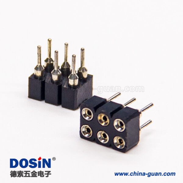 標(biāo)簽:排母連接器,母頭,圓孔,直式,180度,6pin,雙排,針長7.43mm,DIP,間距2.54mm