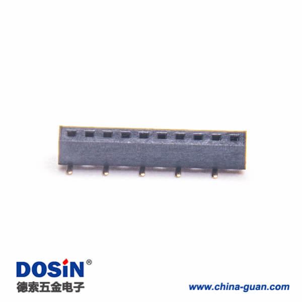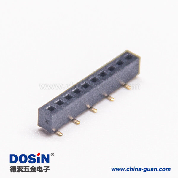 標(biāo)簽:排母連接器,母頭,直式,180度,10Pin,1.27mm,單排,貼板,焊接,鍍金,黑色,H2.1mm,方形