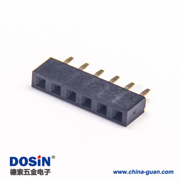 標(biāo)簽:排母連接器,母頭,直式,180度,6Pin,2.54mm,單排,插板,焊接,鍍金,黑色,H5.0mm,方形