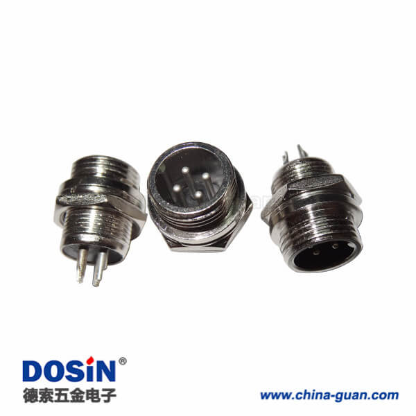 精加工鍍金航空插頭GX12-4芯公頭插座板端安裝連接器10個(gè)