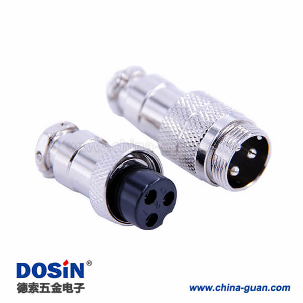 GX16 3芯對(duì)接航空插頭直式公母頭接線