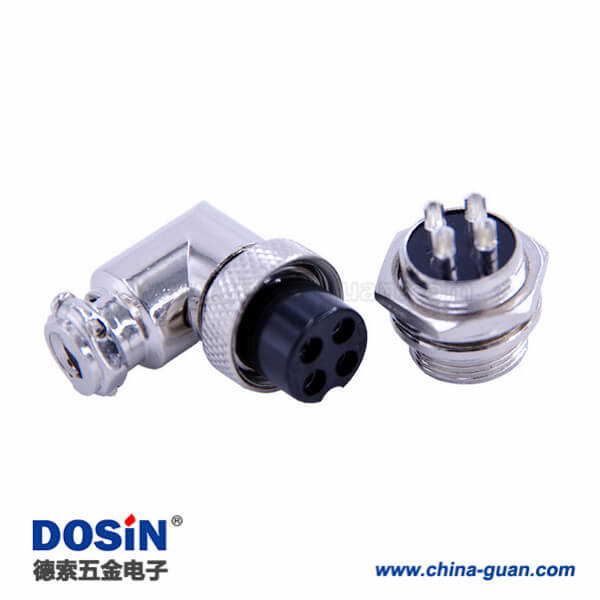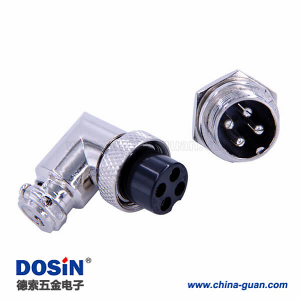 GX16 4芯防水插頭插座連接器彎式穿墻式航空頭