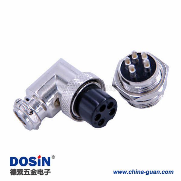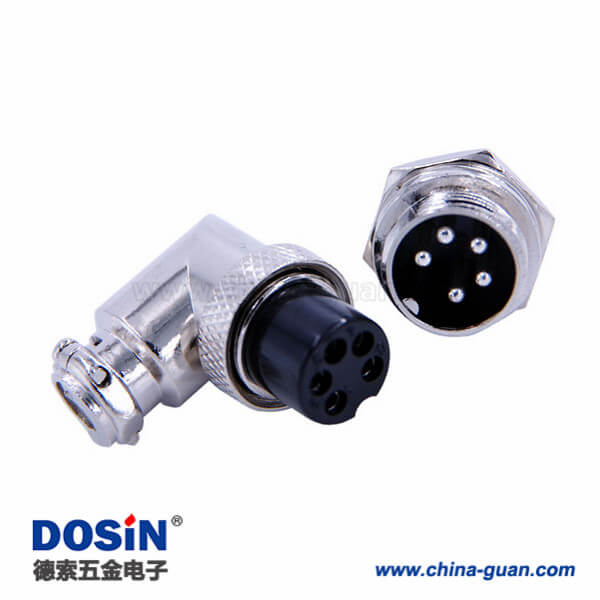 航空插頭5芯連接器開孔16mm彎式母頭公座