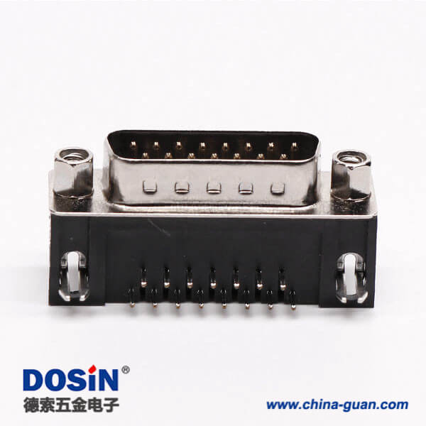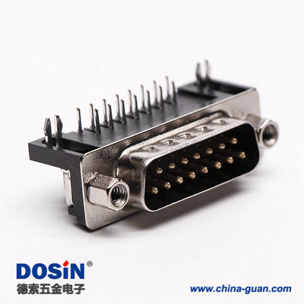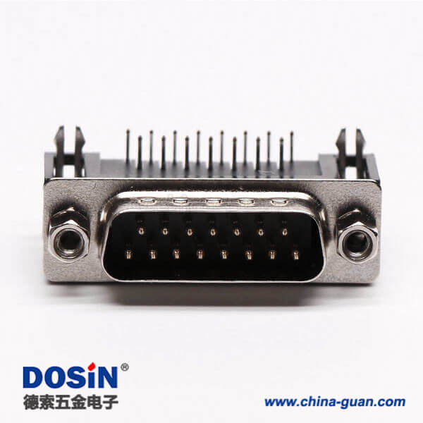D-Sub15連接器插座公頭彎式90°黑膠鉚鎖接PCB板