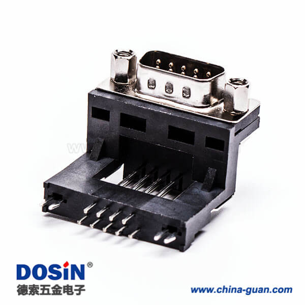 料號:DOSIN-868-0115 標簽:D-sub,高架,9 Pin,彎式,公頭,黑膠,穿孔,接PCB板