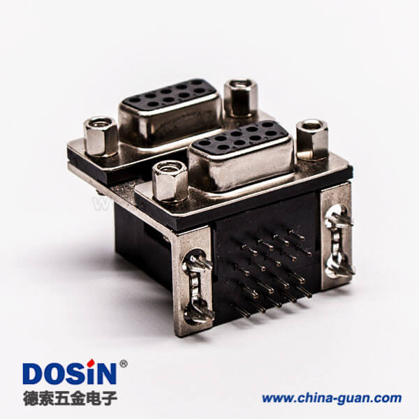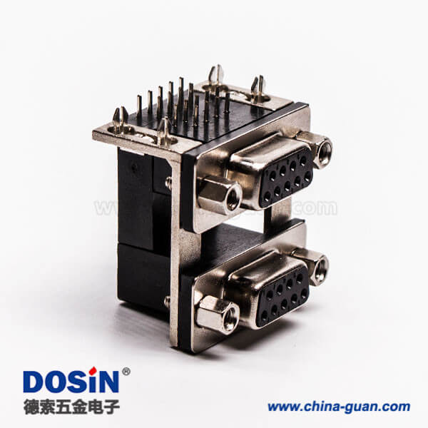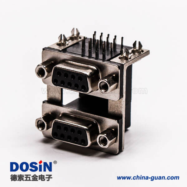 料號:DOSIN-868-0117 標簽:D-sub,雙胞胎,9 Pin,彎式,母頭,黑膠,穿孔,接PCB板